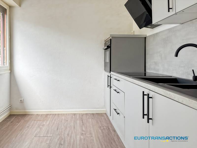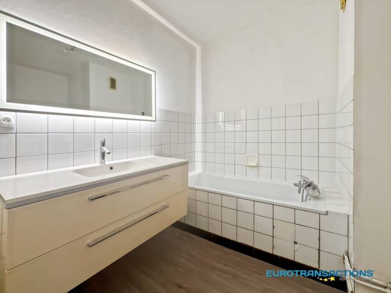 Spacieux et lumineux appartement 2 pièces de 59,82m² habitables sis au 1 er étage. Il dispose d'une entrée avec débarras, d'une cuisine équipée indépendante, d'un salon de 21,78m², d'une très grande chambre de 16,50m² et d'une salle de bains avec wc.