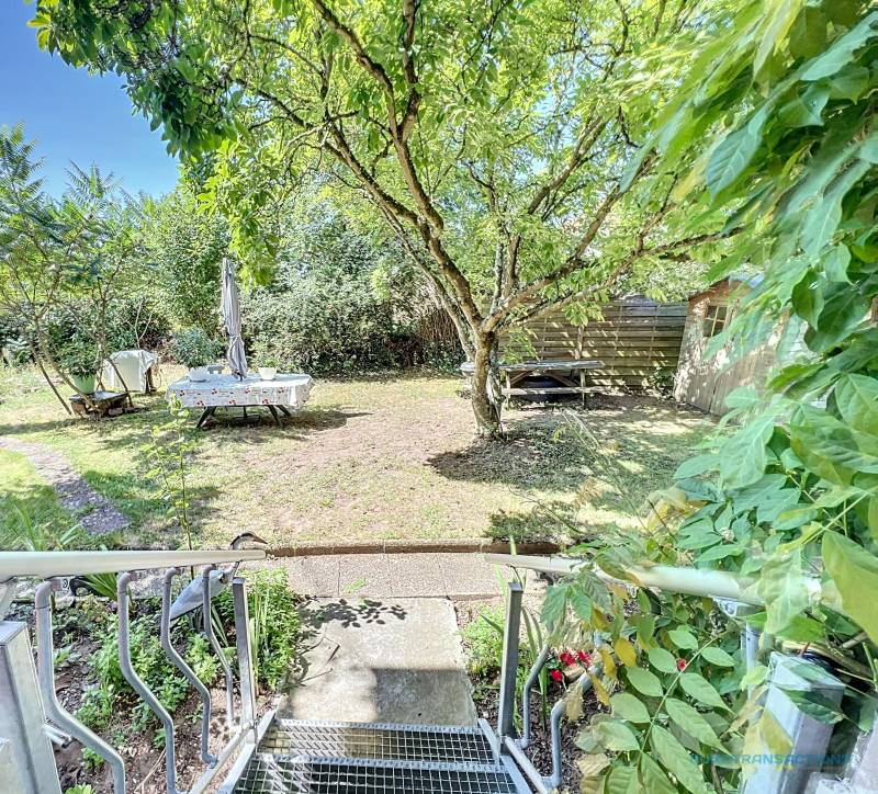 Une pièce de vie spacieuse de 44.40 m² comprenant une cuisine équipée - un salon séjour accès direct à un grand jardin arboré et clos, 2 chambres et une salle d'eau - toilette.