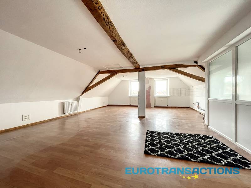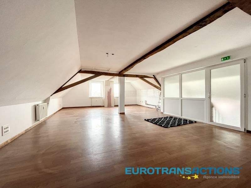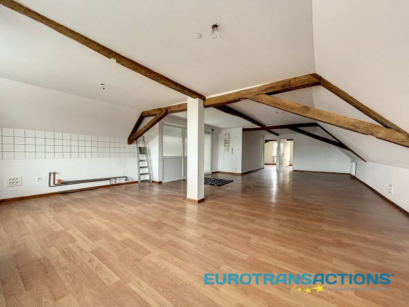 Au 2ème et dernier étage d'une petite copropriété de caractère, spacieux appartement F3 d'une surface habitable de 87 m², style loft. Il dispose d'une pièce de vie de 60 m² (cuisine-salon-séjour), 2 chambres et une salle de bains avec WC. Le tout avec une cave.
