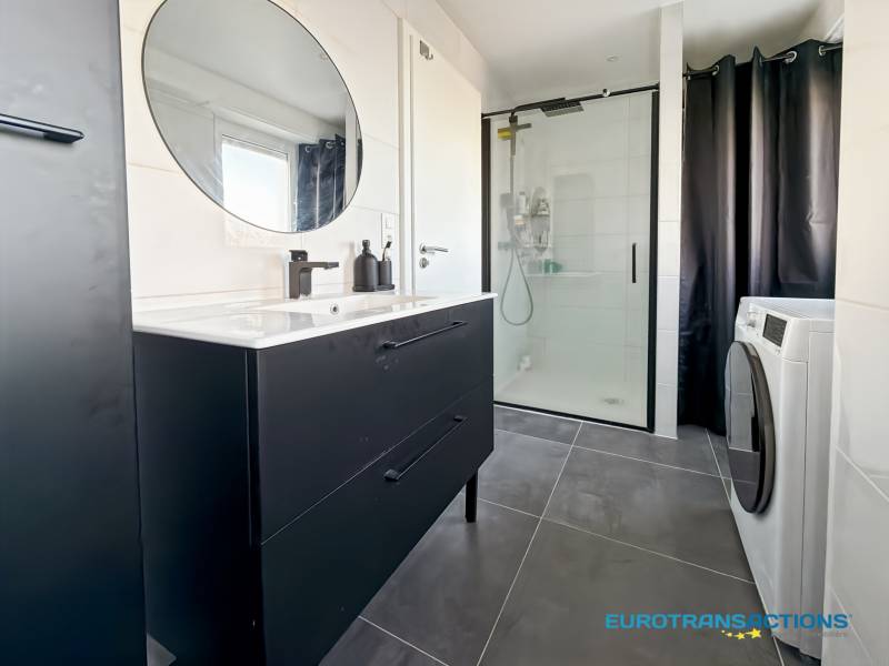 Au sein d’un immeuble bâti en 1997, l’appartement se compose d’une pièce de vie accueillante, d’une cuisine fonctionnelle donnant accès sur une terrasse (13,4 m²) bénéficiant d’une vue lointaine et dégagée, de deux chambres, d’une salle d’eau (neuve) avec toilette et son espace buanderie.