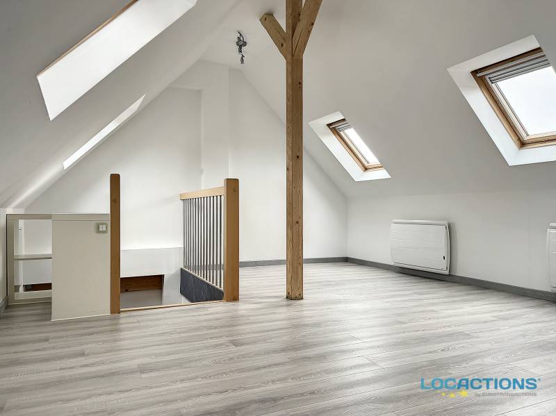 Sous les combles, un beau volume ouvert avec dressing ou rangements.