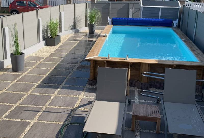 L’extérieur de la maison, avec sa terrasse et sa piscine, vous permettra de profiter pleinement de l’environnement calme tout en étant à proximité de toutes les commodités du village.
