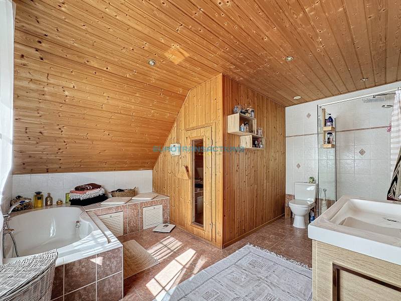 A l'étage 2 chambres, une salle d'eau wc, une suite parentale avec dressing, salle de bains avec douche-wc-sauna.