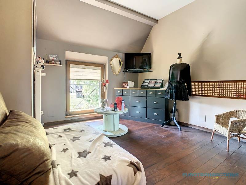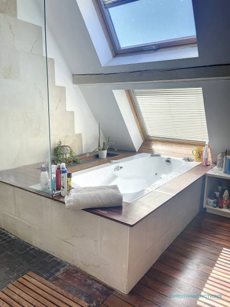 Cette ancienne bâtisse a bénéficié en 2002 d’une rénovation intégrale, pour devenir un lieu de vie atypique, au charme indéniable de 224 m² habitables (237 m² au sol).