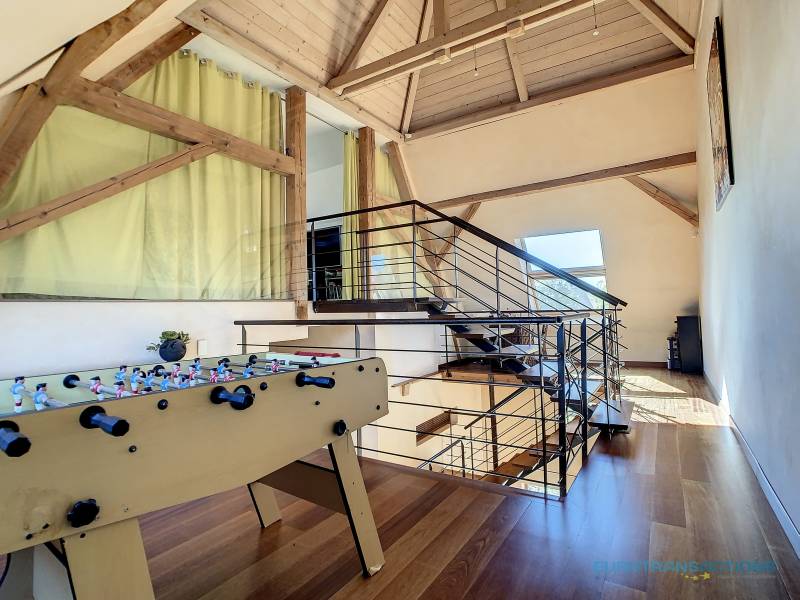 En mezzanine, un espace supplémentaire de 12 m² pouvant être dédié au travail à domicile et/ou en espace salle de jeu.