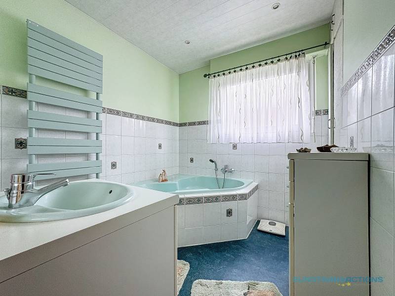 • Salle de Bain : Une salle de bain avec baignoire et vasque.