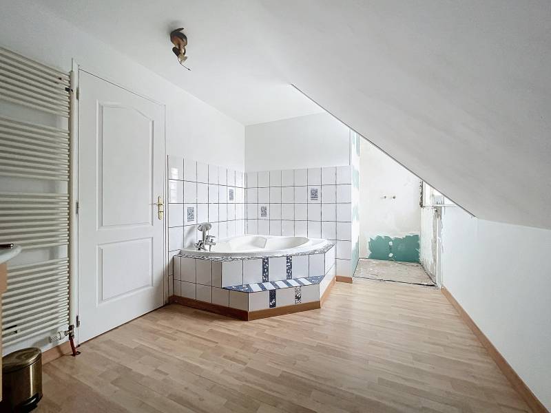 A l'étage, deux chambres (20,64 m² et 12,94 m²) ainsi qu'une salle de bain avec possibilité de mise en place d'une douche.
