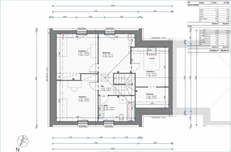 A l'étage 3 belles chambres lumineuses dont une avec un dressing, une salle de bain aménagée et un wc.