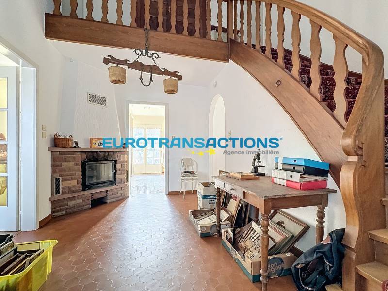 Dispose au rez-de-chaussée : une entrée avec plafond cathédrale et cheminée, un lumineux salon-séjour avec terrasse accès jardin, une cuisine équipée, un couloir, 2 chambres, une salle de bains et WC.