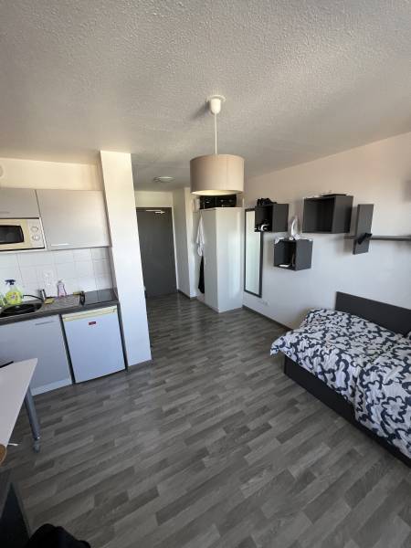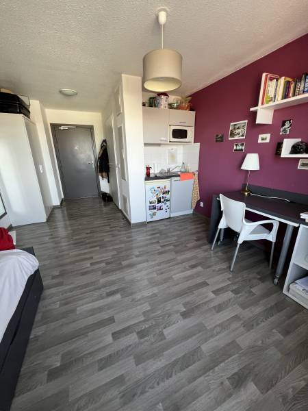Dans une résidence étudiante de 2016, d'architecture contemporaine sur 8 niveaux, studio meublé, connecté avec services, de 19.67 m² au 6ème étage orienté Ouest, vue dégagée, sans vis-à-vis.