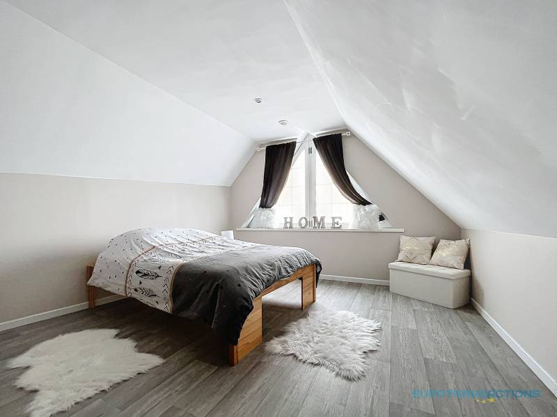 A l'étage, deux chambres (17,14 m² et 13,17 m²) ainsi qu'une grande mezzanine de 13,58 m².